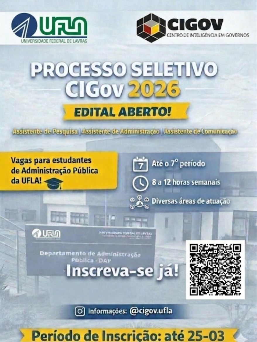 Estão abertas as inscrições para o Programa de Residência em Administração Pública (PRAP). O programa é uma parceria entre a Universidade Federal de Lavras (UFLA) e a...